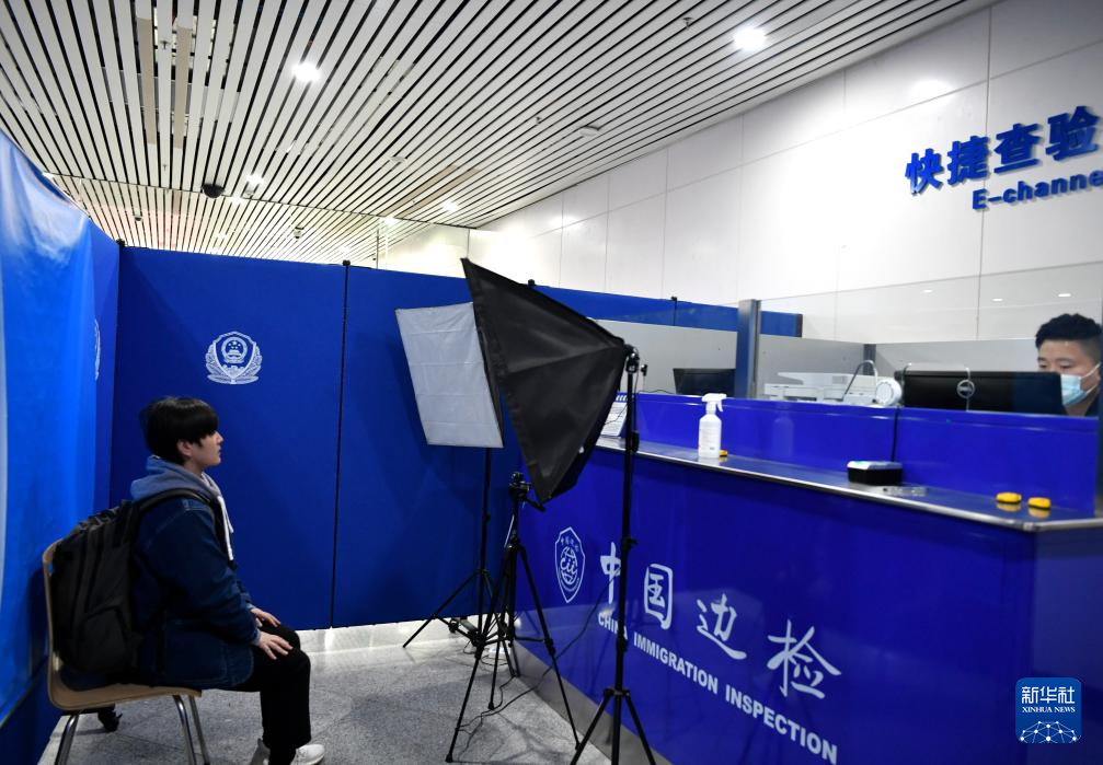 1月1日,在福州长乐国际机场的快捷通道信息采集点,福州机场边检站民警在为台胞进行影像采集。新华社记者 魏培全 摄