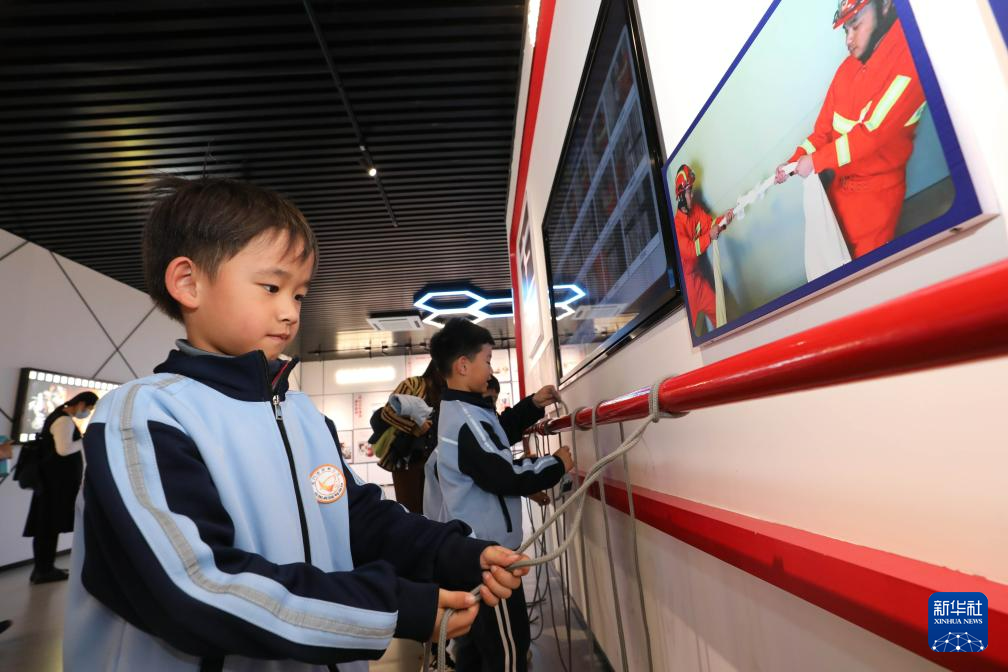 1月6日,在福建省厦门市消防科技教育馆,厦门市槟榔小学学生在学习救生结绳法。 新华社发(曾德猛 摄)