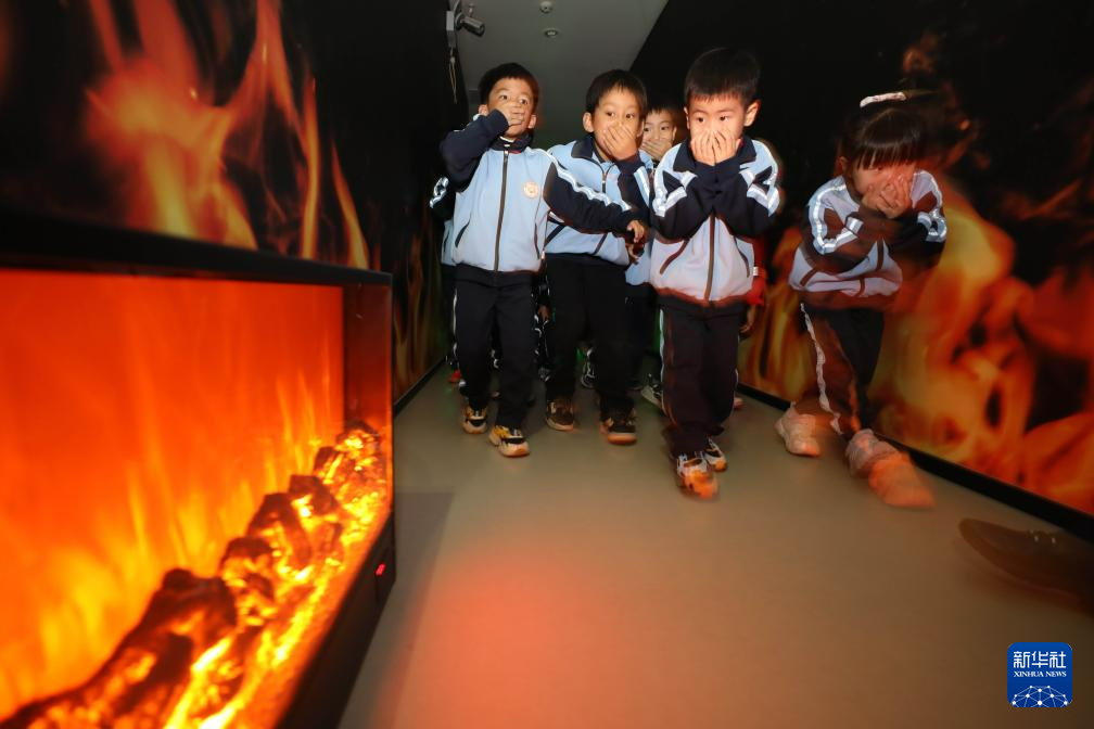 1月6日,在福建省厦门市消防科技教育馆,厦门市槟榔小学学生在参加火灾逃生演练。 新华社发(曾德猛 摄)