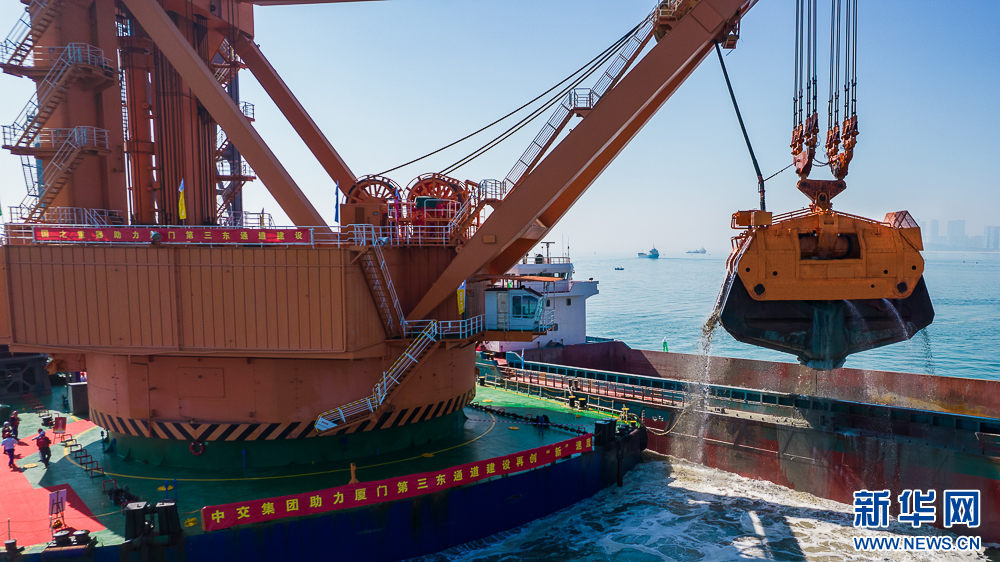 新华网福州1月19日电(刘默涵)厦门第三东通道项目施工又有新进展。1月18日,超大型抓斗式挖泥船“金广”轮,开足马力投入厦门第三东通道建设施工。