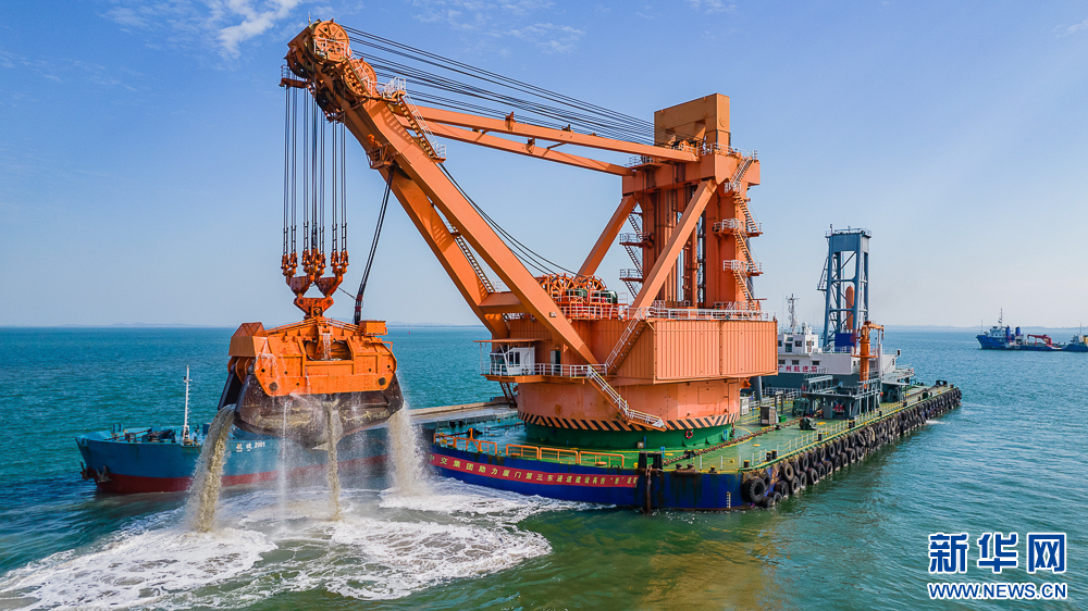 “金广”轮抓斗容量最高达200立方米,每挖一斗岩土,可将一个标准篮球场填高半米。新华网发(中交广州航道局有限公司供图)