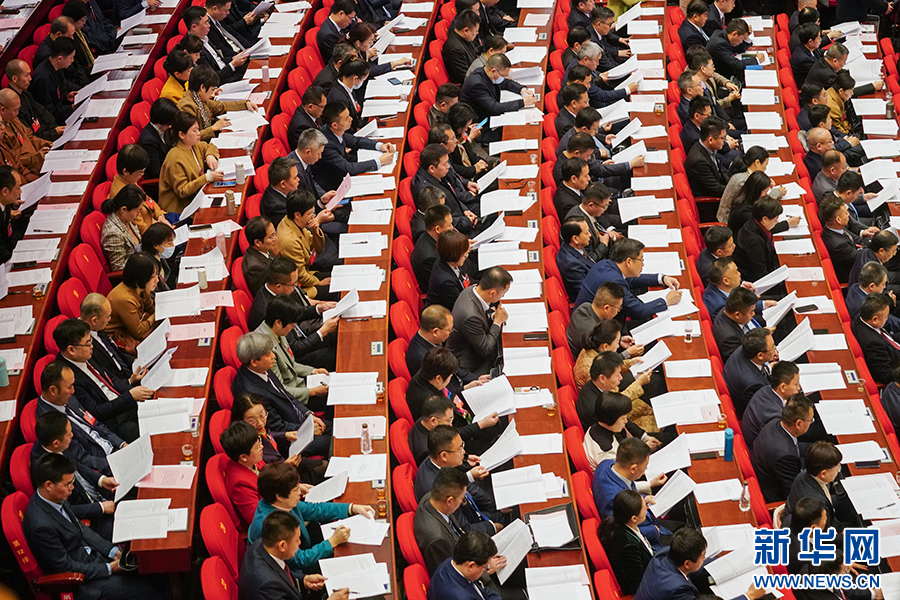 委员们审议报告。新华网 肖和勇 摄