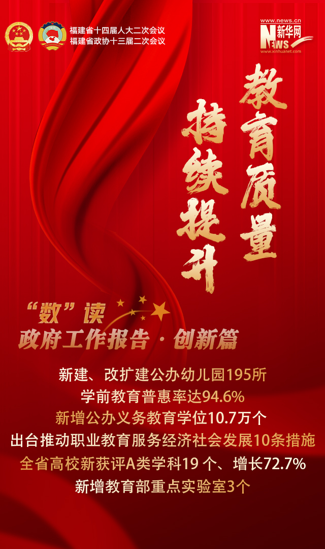 新华网福州1月23日电(袁羽 连雨欣)提交福建省十四届人大二次会议审议的政府工作报告指出,2023年,福建加快建设创新型省份,内生动力更加强劲。全社会研发投入超千亿元,科技创新按下了“快进键”、跑出了“加速度”。坚持以教育之强筑牢创新之基,促进基础教育扩优提质,发挥人才孵化器、创新策源地作用。