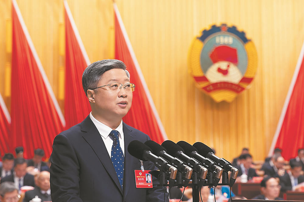 22日,省政协主席滕佳材代表十三届省政协常委会向大会作工作报告。记者 林熙 摄