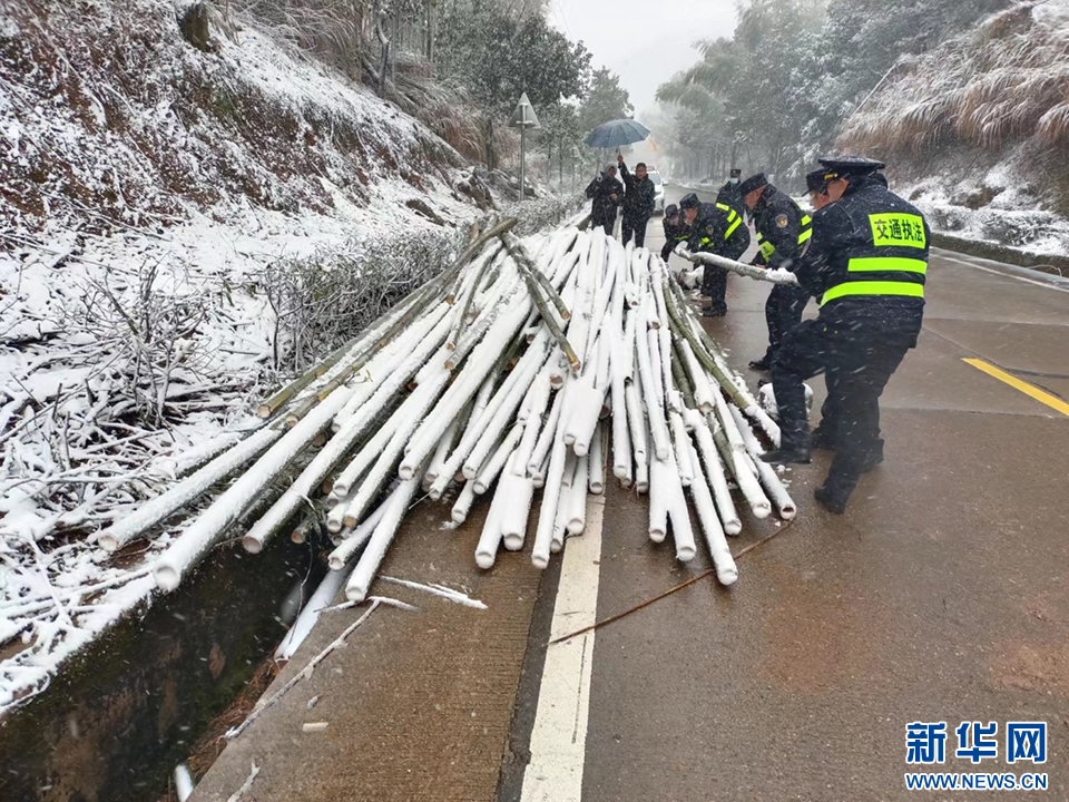 1月22日,武夷山交通执法人员清除路障。新华网发(周小良 摄)