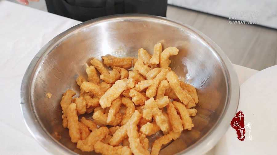 酥肉是一道福建龙岩的传统名菜,也是龙岩宴席上的必备菜肴。精选上好的张口肉,切成长条状,再裹上由低筋面粉和鸡蛋液调成的鸡蛋糊后,放入油锅,现裹现炸,油三分热的时候下酥肉,炸到六分熟后捞出,放凉后,再次复炸。金黄的外壳,裹上雪白的糖粉,轻轻一咬,香甜酥脆,满口清香,回味无穷。