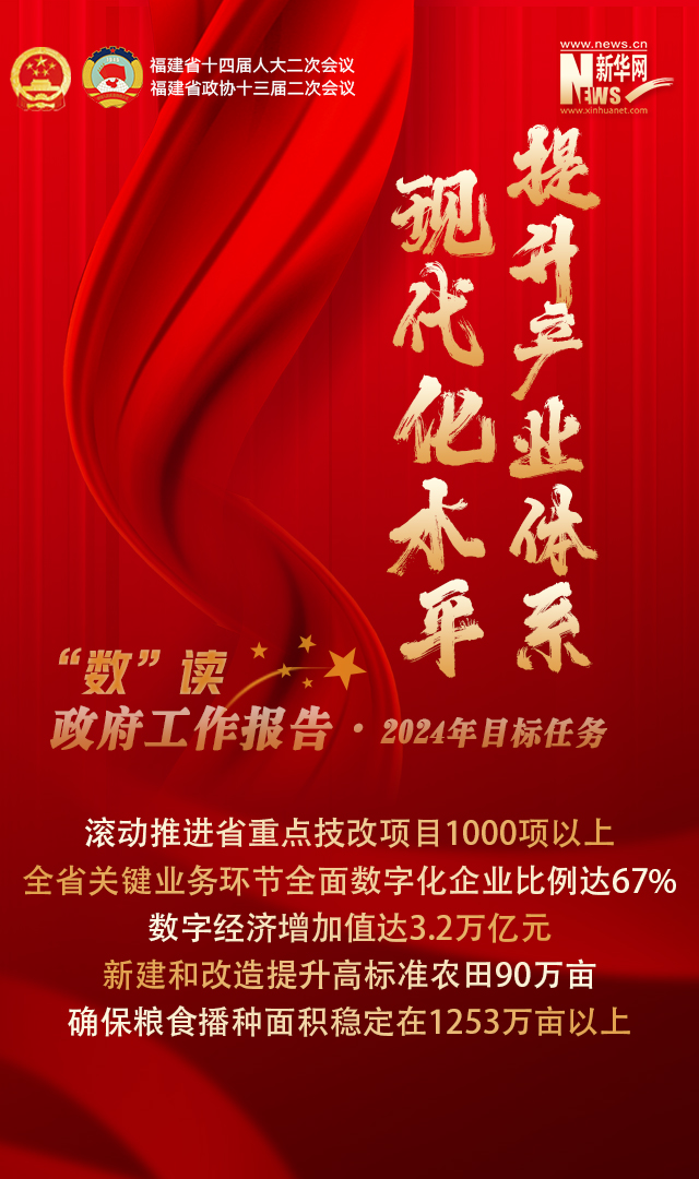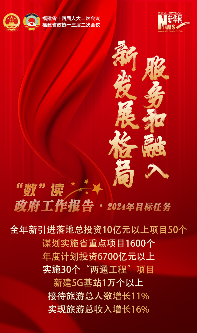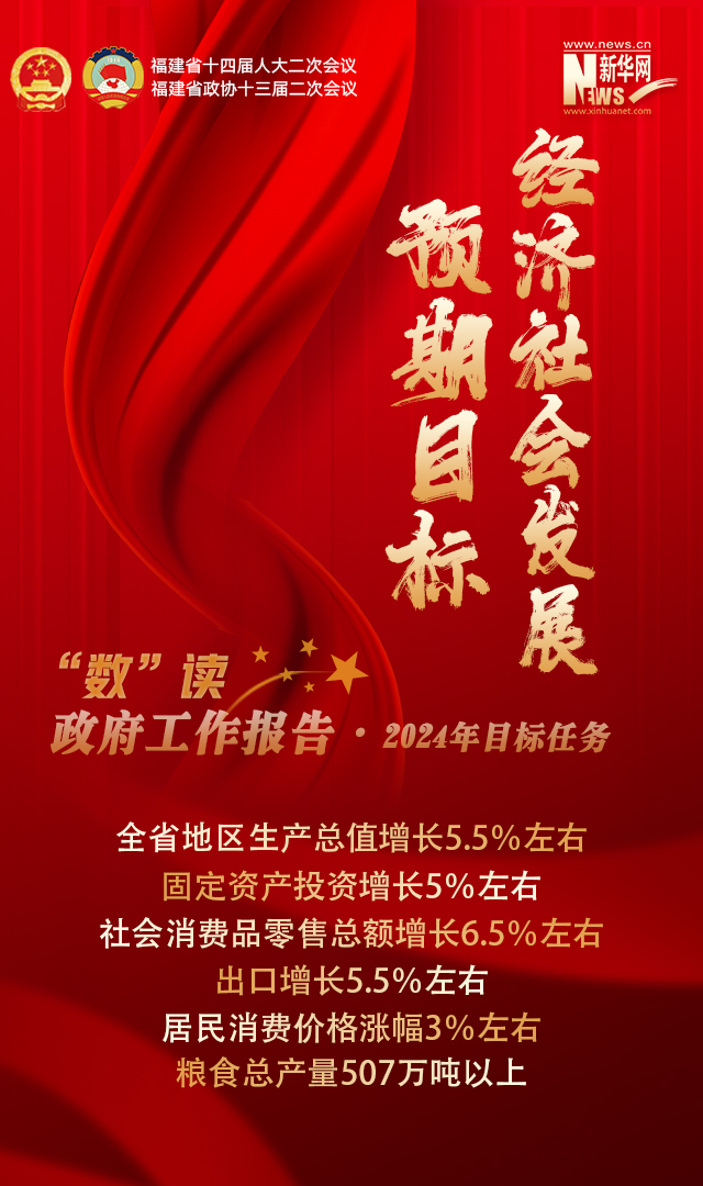 新华网福州1月24日电(袁羽 连雨欣)提交福建省十四届人大二次会议审议的政府工作报告指出,2024年,福建将坚持以推动高质量发展为主题,全力以赴做好各项工作。聚焦新福建建设宏伟蓝图,坚持稳中求进工作总基调,持续推动经济实现质的有效提升和量的合理增长,奋力推动中国式现代化福建实践取得新突破。