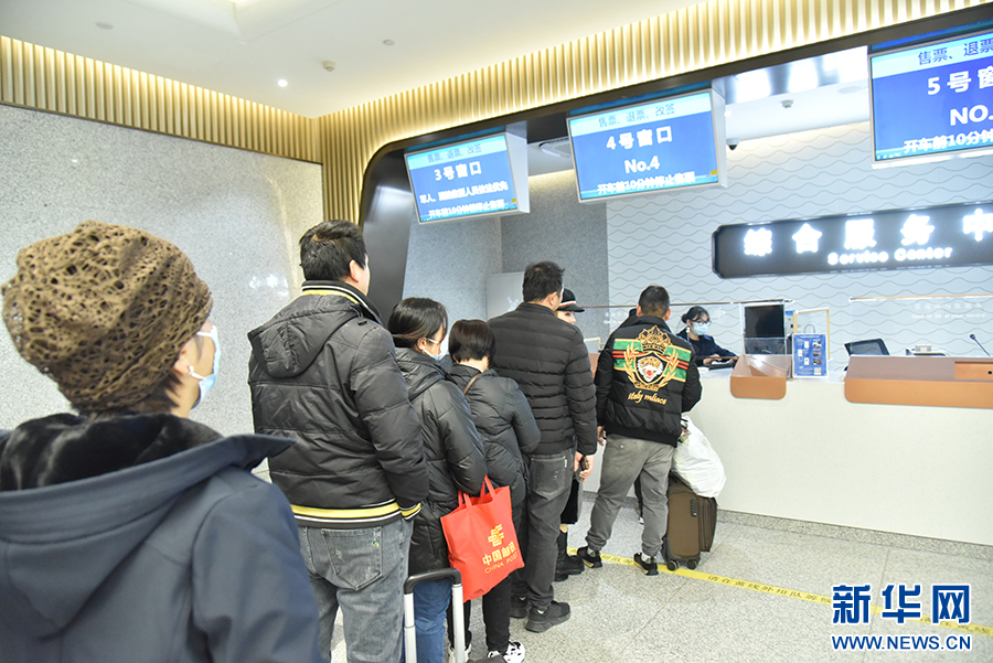 在福州火车站候车大厅的检票口前,旅客有序排队,准备检票进站乘车。新华网发(江曲 摄)
