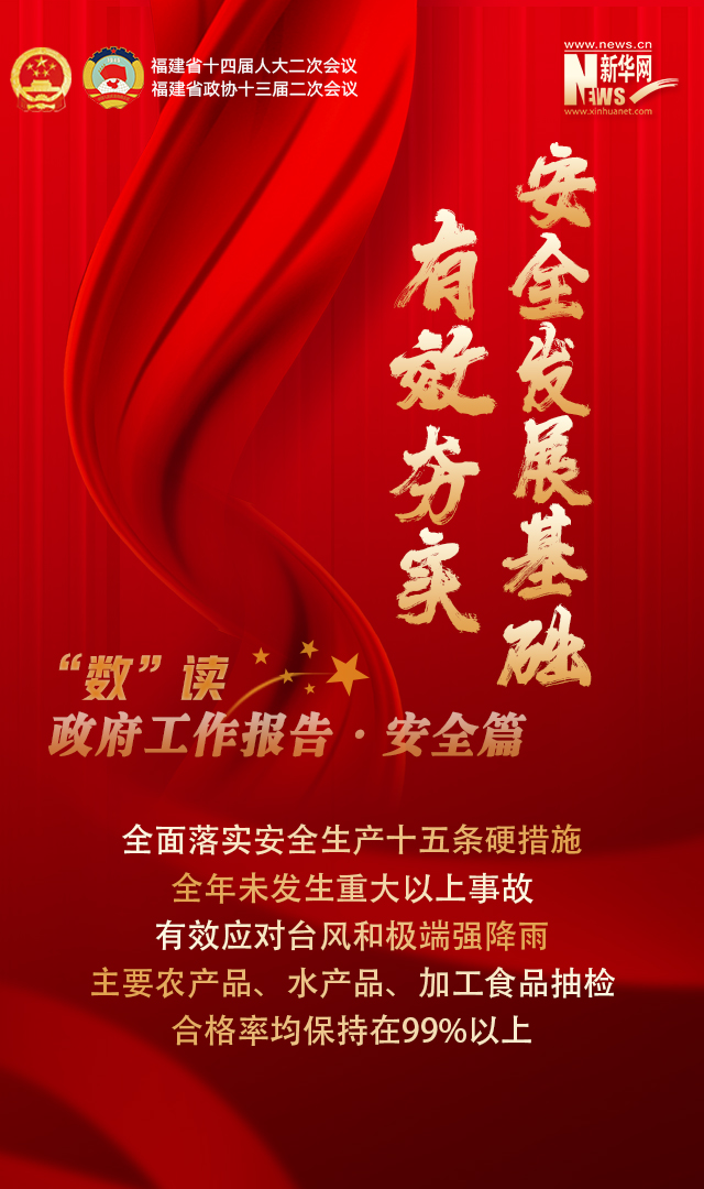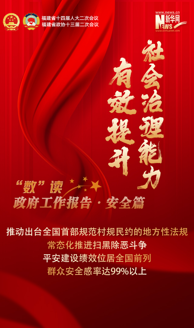 新华网福州1月24日电(袁羽 连雨欣)提交福建省十四届人大二次会议审议的政府工作报告指出,2023年,福建奋力打造平安福建,社会大局更加稳定。平安建设绩效位居全国前列,群众安全感率达99%以上;深化治理“餐桌污染”,牢牢守住人民群众“舌尖上的安全”……围绕人民群众对平安建设的新期待新要求,福建不断筑牢社会平安基石。