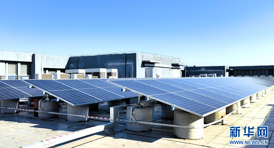 信达信息产业园厂房楼顶的光伏板在阳光下熠熠生辉。 新华网 刘丰 摄