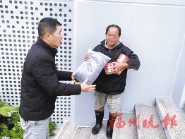 市救助站工作人员给外来务工人员送上棉被、方便面等。受访单位供图