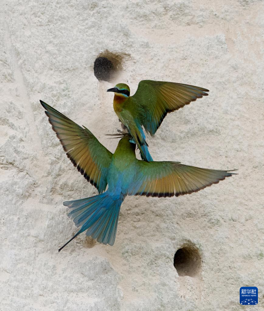 2023年5月20日,两只栗喉蜂虎在繁殖地筑巢。新华社记者 魏培全 摄