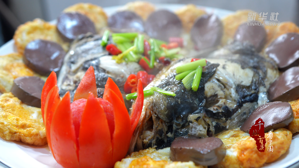 鸿运当头是福建邵武颇有名气的地方菜,取材鱼头、鸭血、蛋,通过煎、炸、红烧等多种方式烹饪而成。三种食材奇妙碰撞后,鸭血嫩滑,鱼头鲜美,诞生了美味可口的菜品。因摆盘时荷包蛋成圆形,鱼头在下方,故取其寓意“鸿运当头”,好运连连。