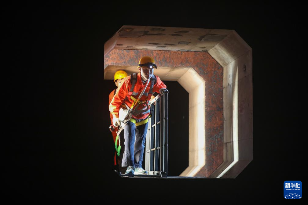 1月26日,福州工务段青年突击队进入平潭海峡公铁大桥箱梁检修。新华社记者 周义 摄