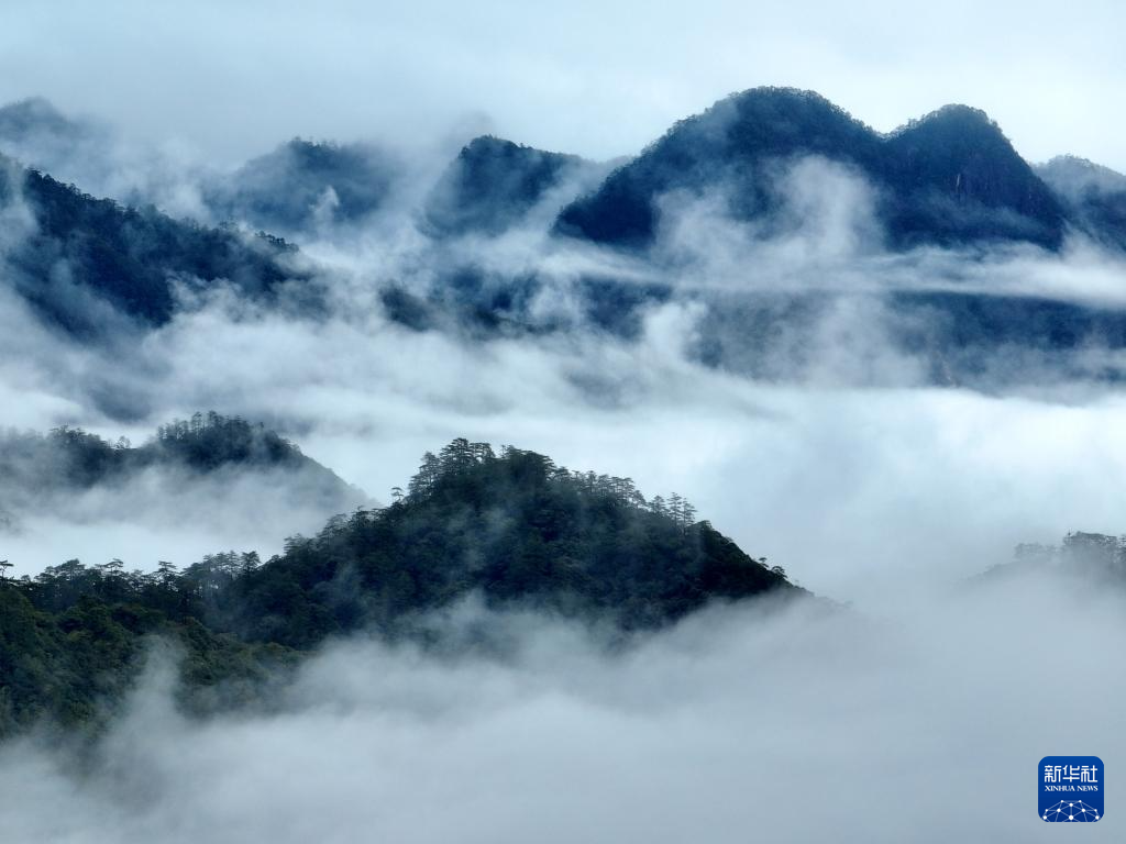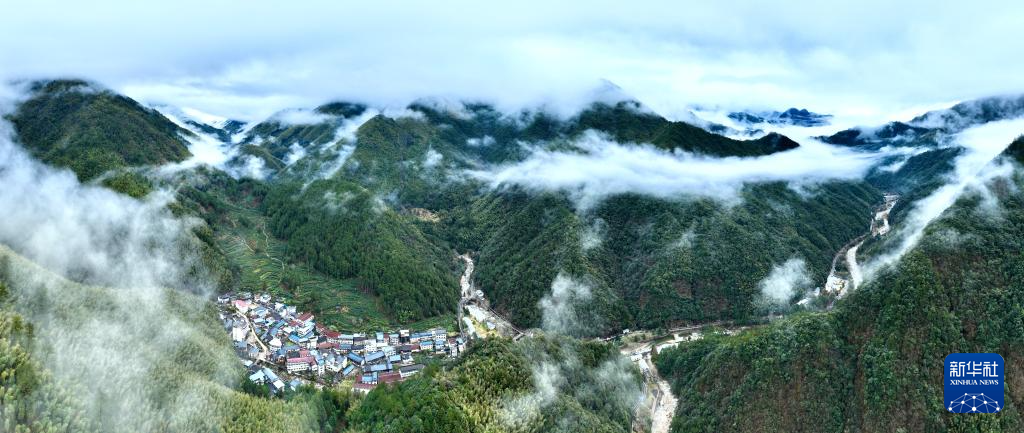 当日,雨后的武夷山国家公园腹地桐木村周围云雾缭绕,空中俯瞰,宛若仙境。