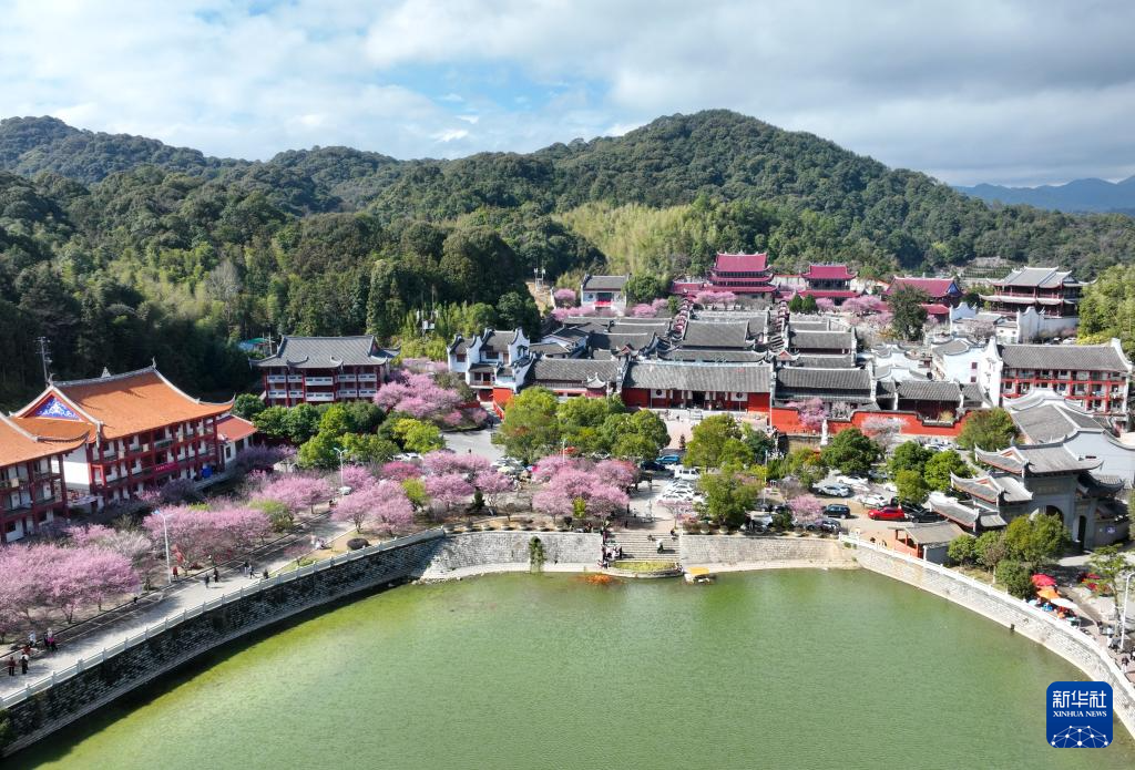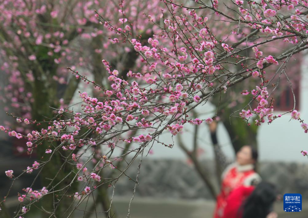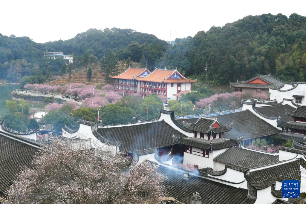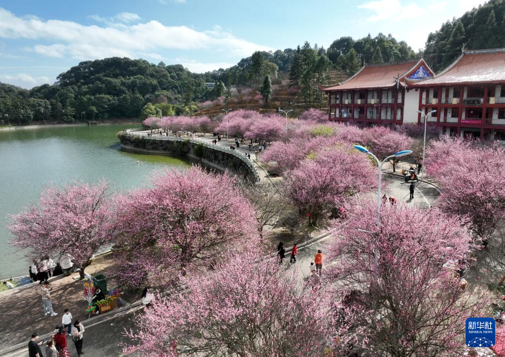 近日,位于福建省福州市晋安区寿山乡的千年古刹林阳寺500余株梅花美丽绽放,吸引众多游客前来赏梅游玩。