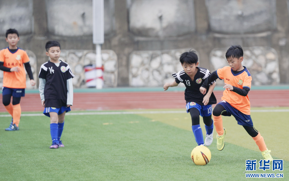 小球员们以球会友,挥汗绿茵场。新华网发(林楷煜 摄)