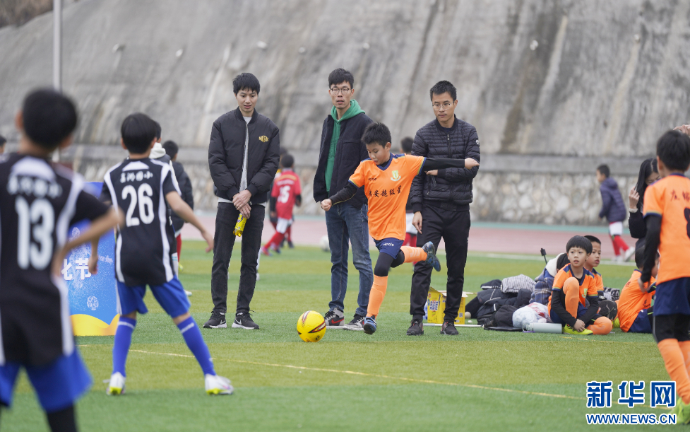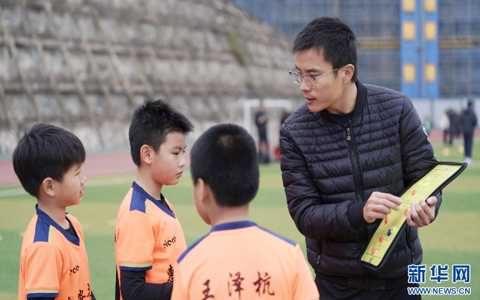 中场休息时间教练员给小球员布置战术。新华网发(林楷煜 摄)