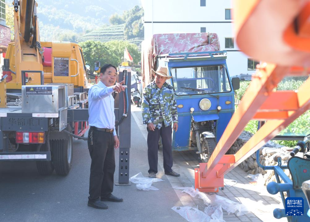 福鼎市赤溪村党总支书记吴贻国(左)指导路灯安装工作(2023年12月8日摄)。新华社记者 林善传 摄