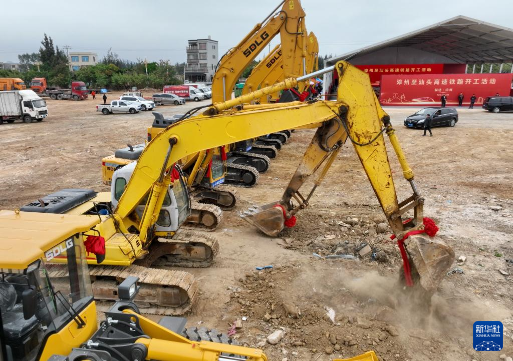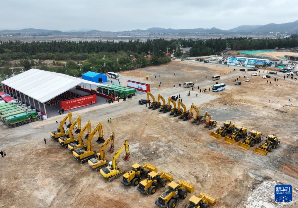 这是在福建省漳州市东山县拍摄的漳汕高铁开工活动现场(2月4日摄)。新华社记者 林善传 摄