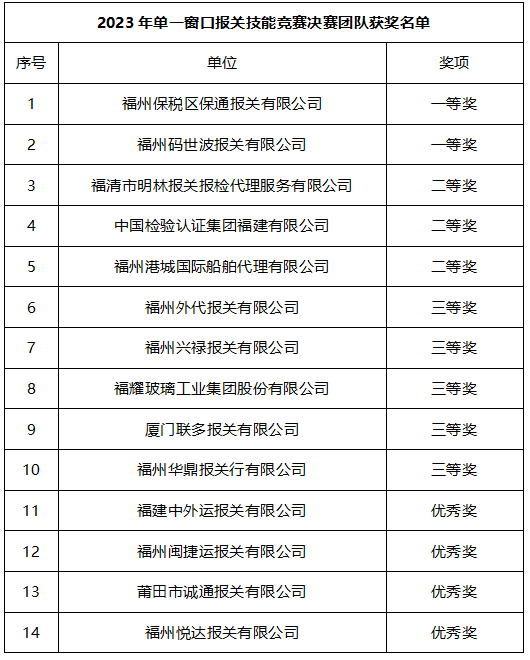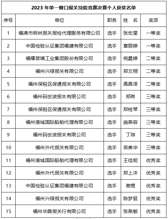 新华网福州2月8日电(刘默涵)2月6日下午,中国(福建)国际贸易单一窗口报关技能竞赛颁奖。15名个人和14个团体脱颖而出,摘得荣誉。