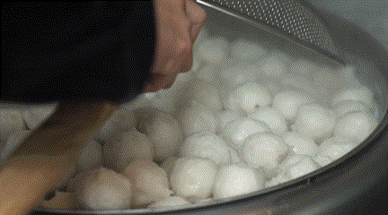 浑圆的鱼丸落入水中