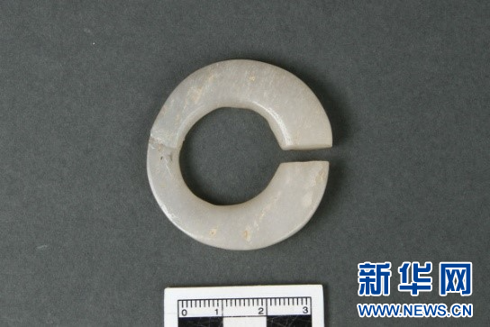 平潭壳丘头遗址出土玉玦。 新华网发(福建博物院供图)