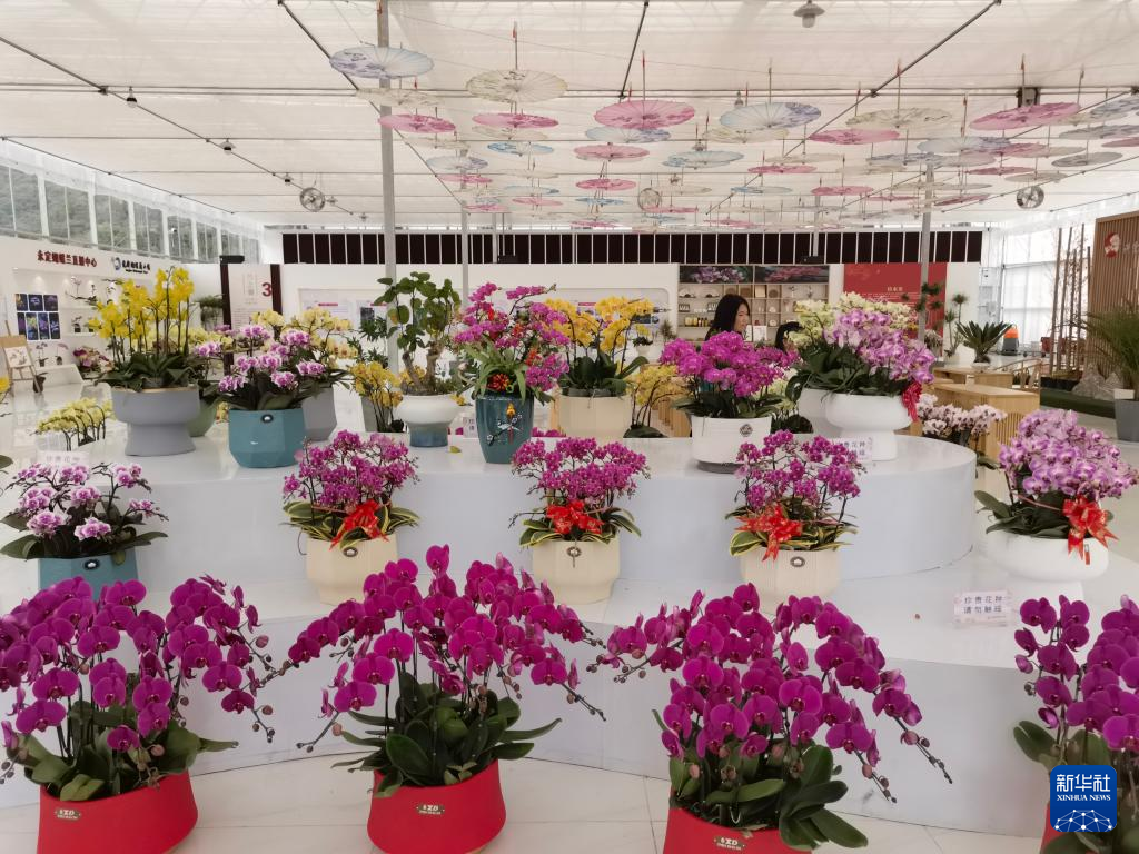 龙潭镇蝴蝶兰综合展示中心展出的部分花卉。新华社记者 秦宏 摄