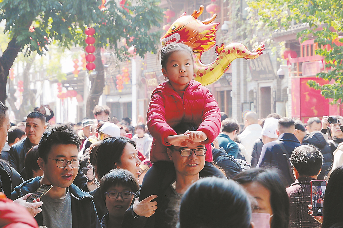 今年迎来史上最长春节假期,返乡、探亲、度假、亲子游等各种旅游方式交织,春节旅游逐渐成为一种新的年俗,“先回家、再出游”成最“热”过年方式。全省文旅系统认真落实省委省政府及文化和旅游部工作部署,围绕“欢欢喜喜过大年”春节主题精心策划了丰盛的春节文旅大餐。观灯会、光影秀、逛庙会、游古镇、祈福游等特色新春民俗活动热闹上演,民俗大戏、非遗民俗展演、古厝展览、古风舞乐、寻梦快闪等特色活动给市民游客带来浓浓的福派年味,传统年俗活动极大激发了群众出游热情。福州三坊七巷上演“龙行坊巷·民俗大戏”,醒狮开道、龙腾古厝,展示闽都传统新年民俗,假日前七天人流量超100万人次,比上年同期大增三成以上;泉州时隔20年后重启大型民俗踩街活动,在全长1.6公里的踩街线路中,30个方阵、30项非遗项目、1500名演职人员齐上街头表演,吸引超30万市民游客参与,线上新媒体曝光量超1亿次;厦门同安吕厝“送王船”之迎王祈福民俗活动吸引约20万人到场观赏。