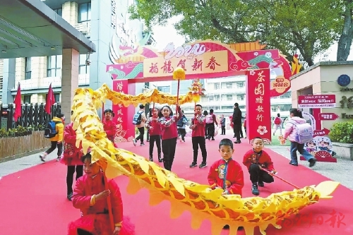 元宵未过,春节的喜庆气氛仍在延续。在茶园山中心小学开学游园会现场,一条长8米的巨龙,在十多名学生的舞动下,在校门口游动,龙头高昂,“龙”气腾腾。福州教育学院附属第一小学给每名学生赠送“福瑞龙”卡小礼包,内含中草药薄荷的种子以及栽培方法,目的是培养孩子的劳动实践能力,弘扬中医药优秀传统文化。在麦顶小学,“麦苗舞狮队”闪亮登场,锣鼓震天,祥狮欢腾,“麦苗管乐团”也奏响了甲辰龙年第一声音韵。钱塘小学屏北分校在祥龙引路、瑞狮开道的喜气氛围中迎接开学。乌山小学准备了有趣的猜灯谜、龙年趣味运动会等活动。
