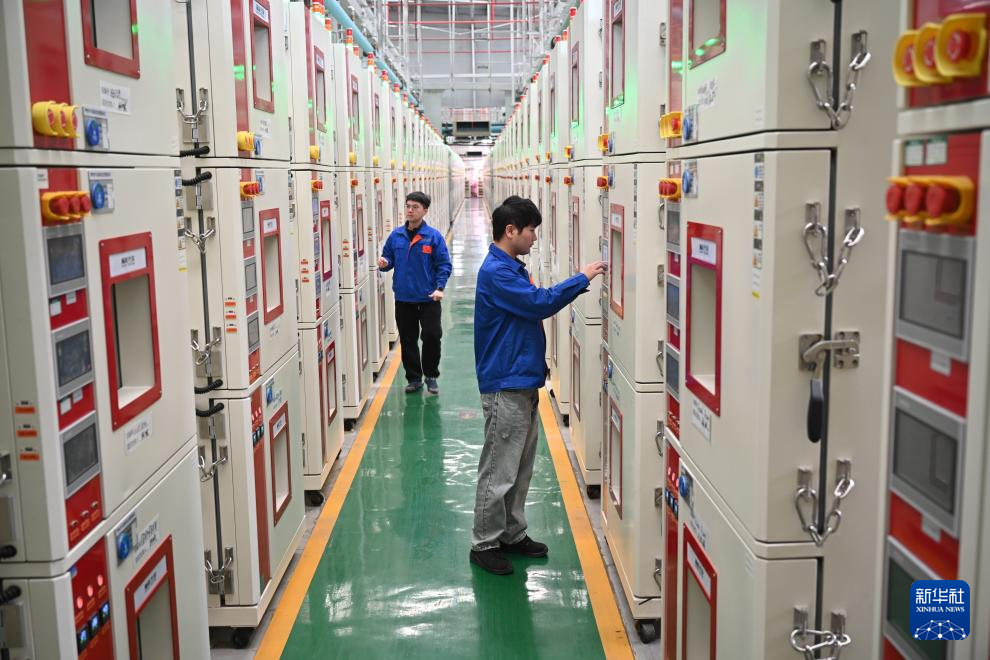 2月19日,宁德新能先锋检测科技有限公司工作人员在电芯实验室查看设备运行情况。新华社记者 姜克红 摄