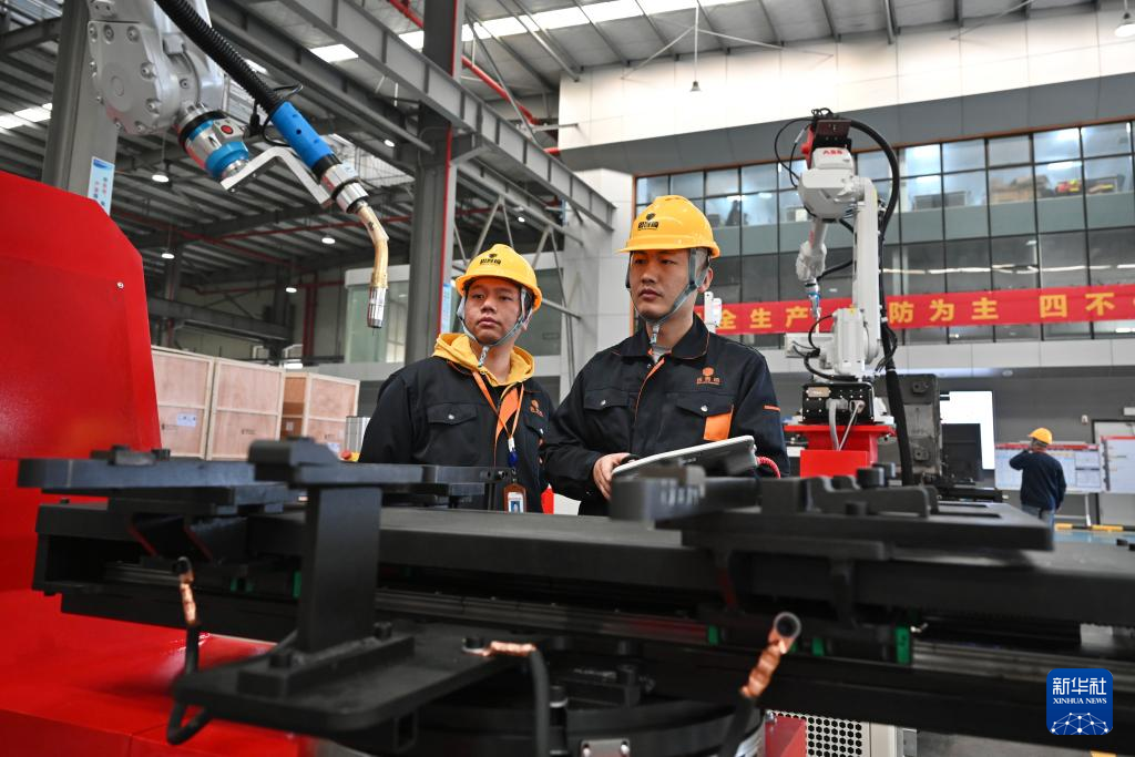 2月19日,宁德思客琦智能装备有限公司工作人员在调试机器人自动化设备。新华社记者 姜克红 摄