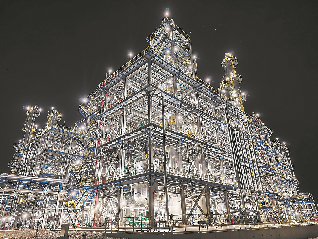 岁序更迭,万象更新。在位于福建古雷石化基地的福化鲁华项目现场,一座62米高的预脱重塔很是引人注目(上图)。中心控制室内,工作人员紧盯屏幕监控生产。一粒粒白色、黄色的晶状物质刚从生产线产出,就被安排交付使用。