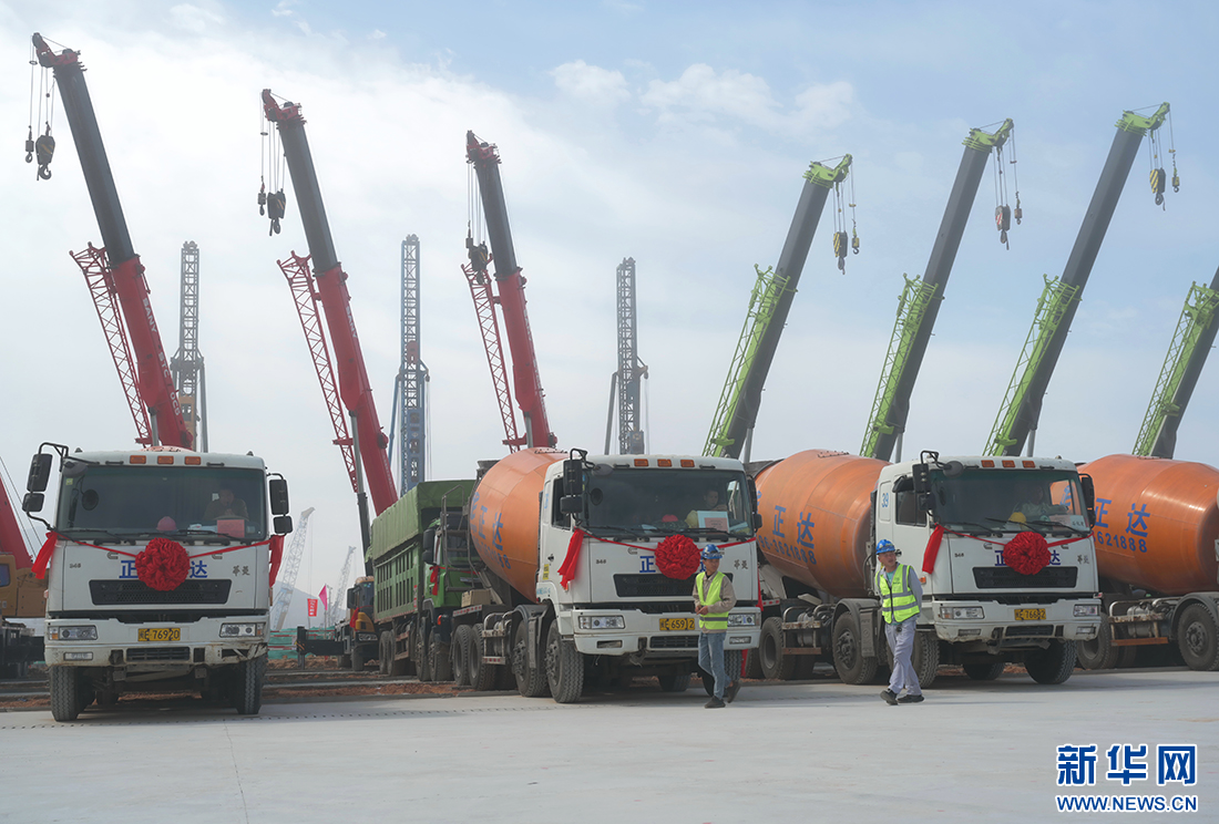2月19日,中沙古雷乙烯项目主体工程全面动工现场。新华社记者 林善传 摄