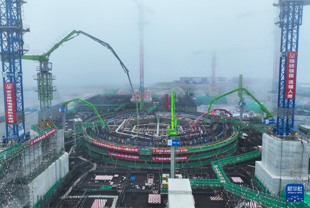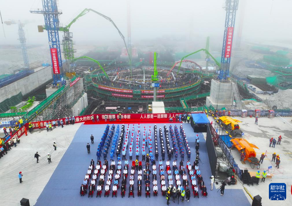 2月22日,中核集团漳州核电二期工程“华龙一号”3号机组浇灌核岛第一罐混凝土浇筑现场(无人机照片)。新华社发(中核集团中核二四公司供图)