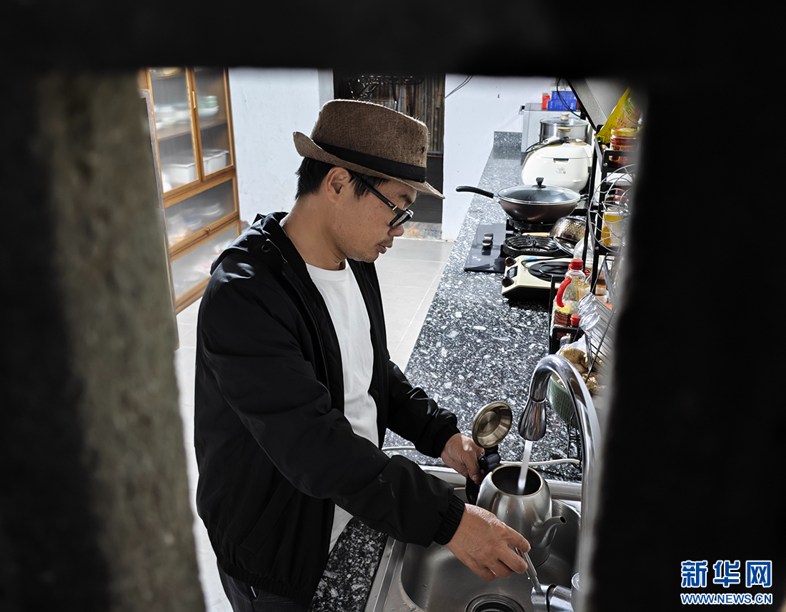 东山县人民群众用水安全得到保障。这是南埔村村民在家中接水。新华网 刘默涵 摄