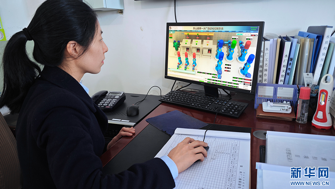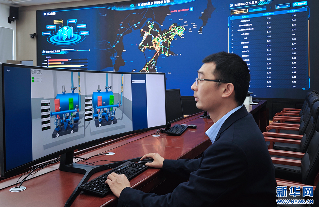 东山水务有限公司水厂工作人员通过智慧系统进行值班调度。新华网 刘默涵 摄