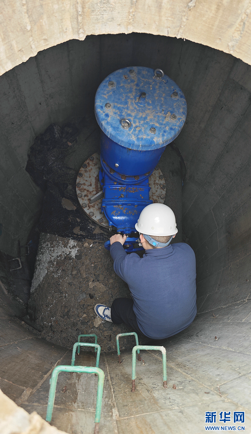 东山龙潭引调水有限公司工作人员井下检查管道设备。新华网 刘默涵 摄