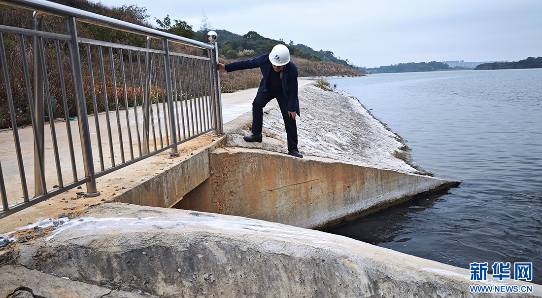 东山龙潭引调水有限公司工作人员巡查红旗水库进水口。新华网 刘默涵 摄
