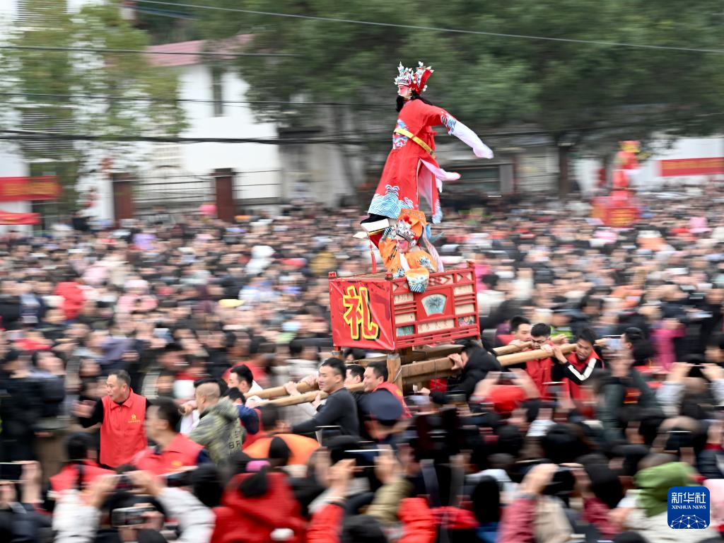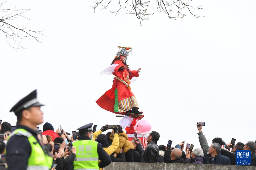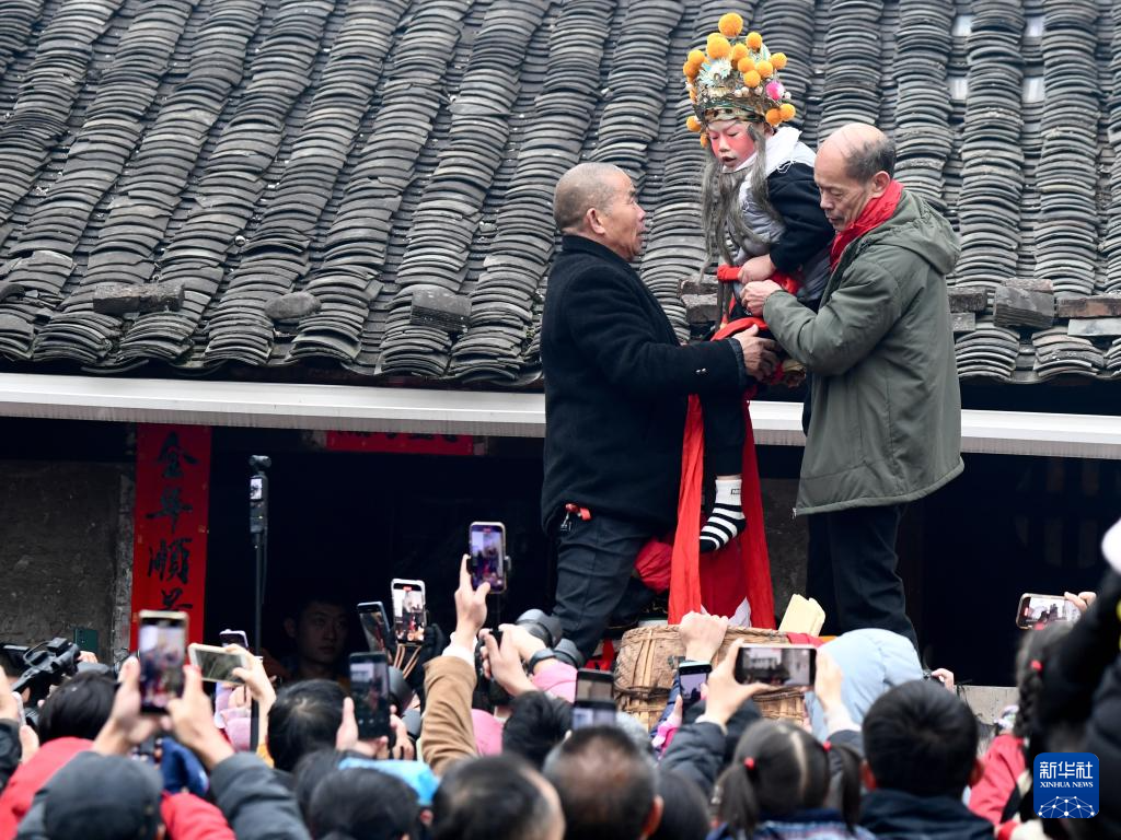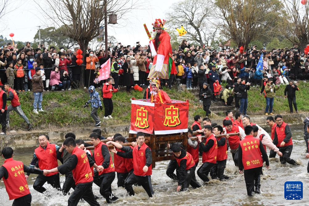 元宵佳节,福建省连城县罗坊乡举行独具特色的水陆“走古事”庆元宵活动。罗坊乡的“走古事”独具特色,是当地客家人为纪念祖先不远万里由中原迁徙而来举办的闹元宵活动,走古事队伍不但要在岸上狂奔竞速,更需在水中逆流争渡,展现先祖奋勇拼搏、力争上游的创业精神,以教育、激励后人,场面热闹非凡。