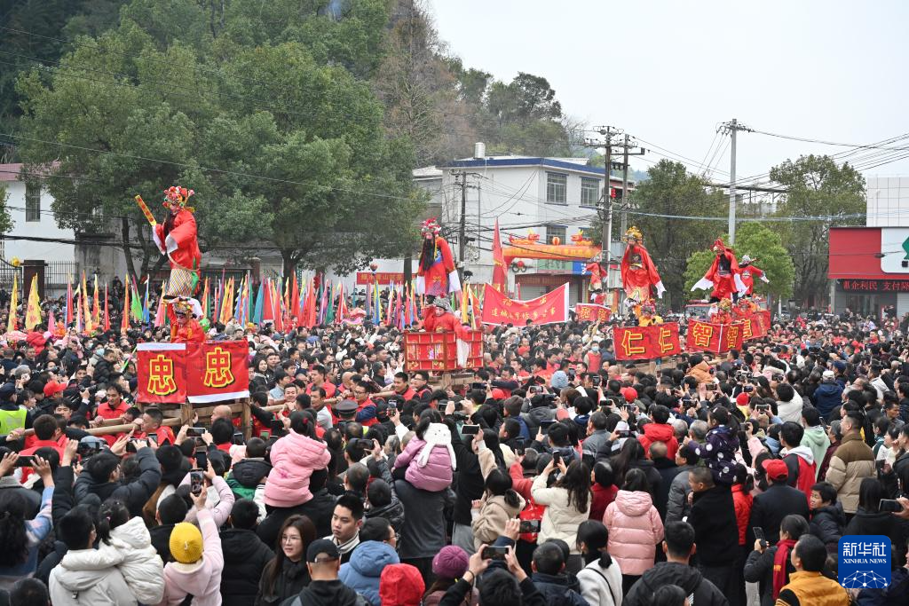 2月24日,福建省连城县罗坊乡走古事庆元宵活动吸引众多观众。新华社记者 姜克红 摄