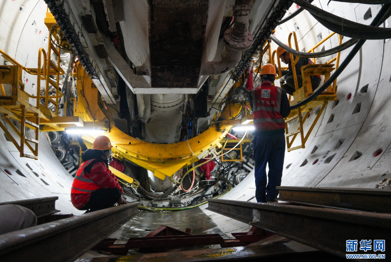 “海峡号”盾构机在福州地铁2号线东延线一期工程下德站开展作业。新华网发(陈鹤 摄)