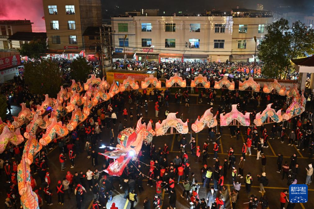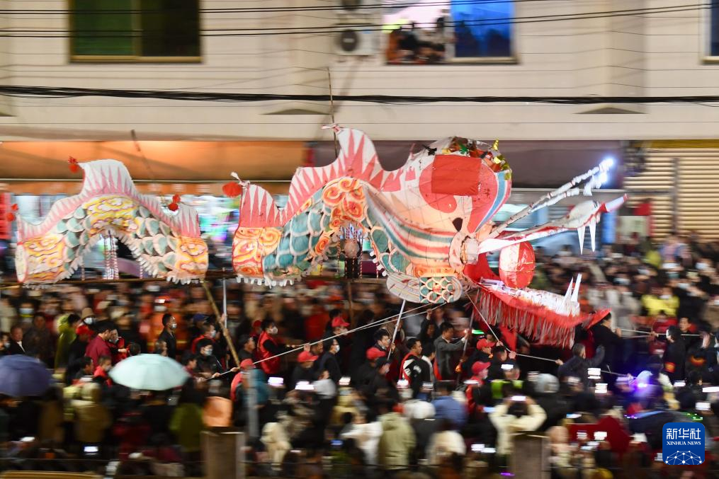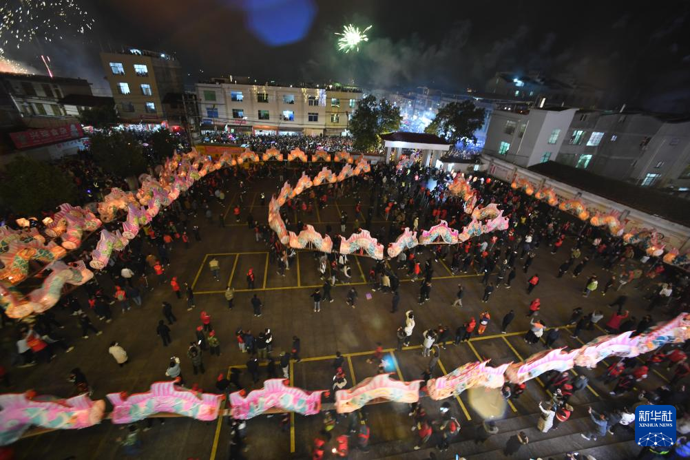 2月24日晚,福建省龙岩市连城县姑田镇在进行元宵游大龙民俗活动。 新华社记者 姜克红 摄