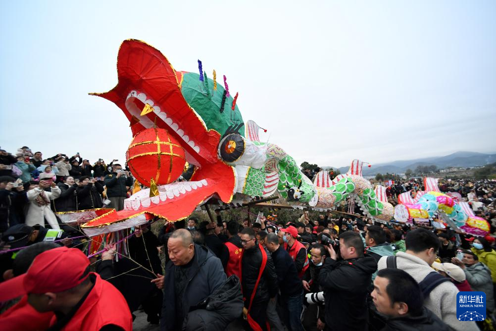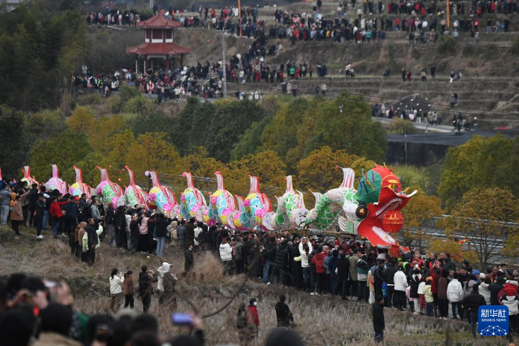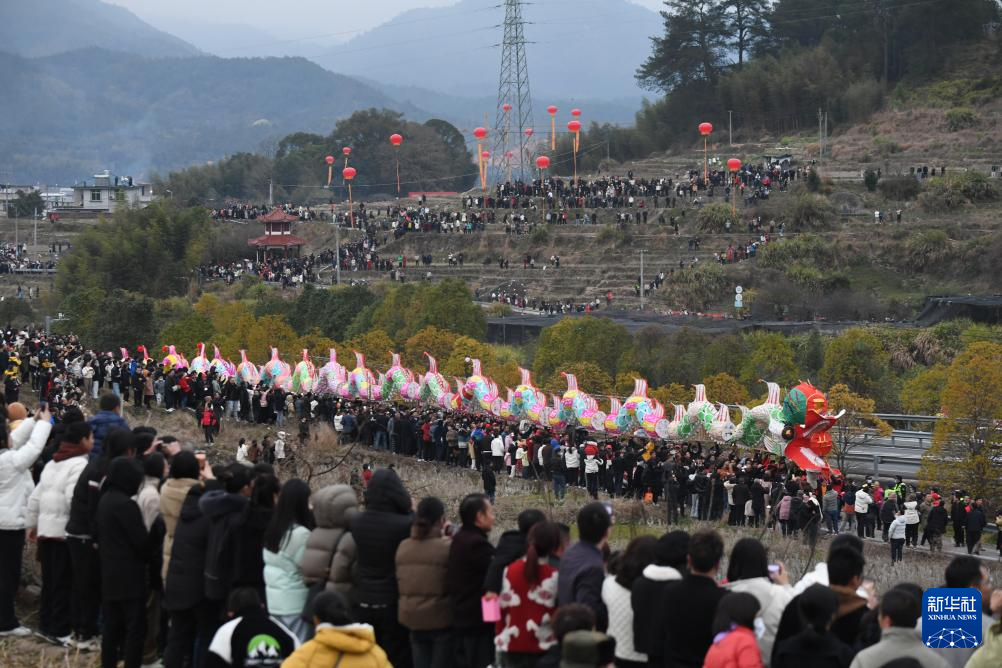 2月24日,福建省龙岩市连城县姑田镇在进行元宵游大龙民俗活动。 新华社记者 姜克红 摄
