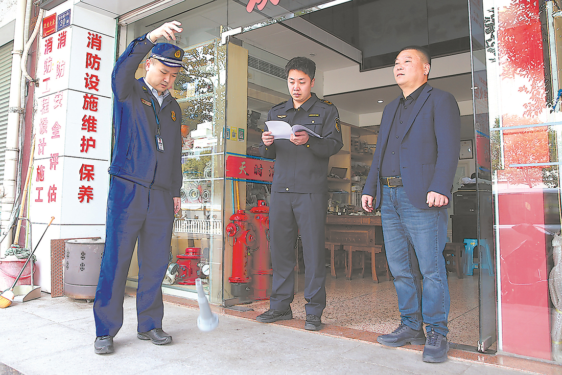 消防监督员走进消防产品销售点和人员密集场所,对消火栓、灭火器、消防应急灯具等消防产品进行检查,重点检查场所内灭火器材是否完备,室内消火栓能否正常出水等。