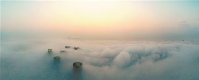 昨日,会展一带的浓雾宛如凝结成实质一般。(记者 林铭鸿 摄)