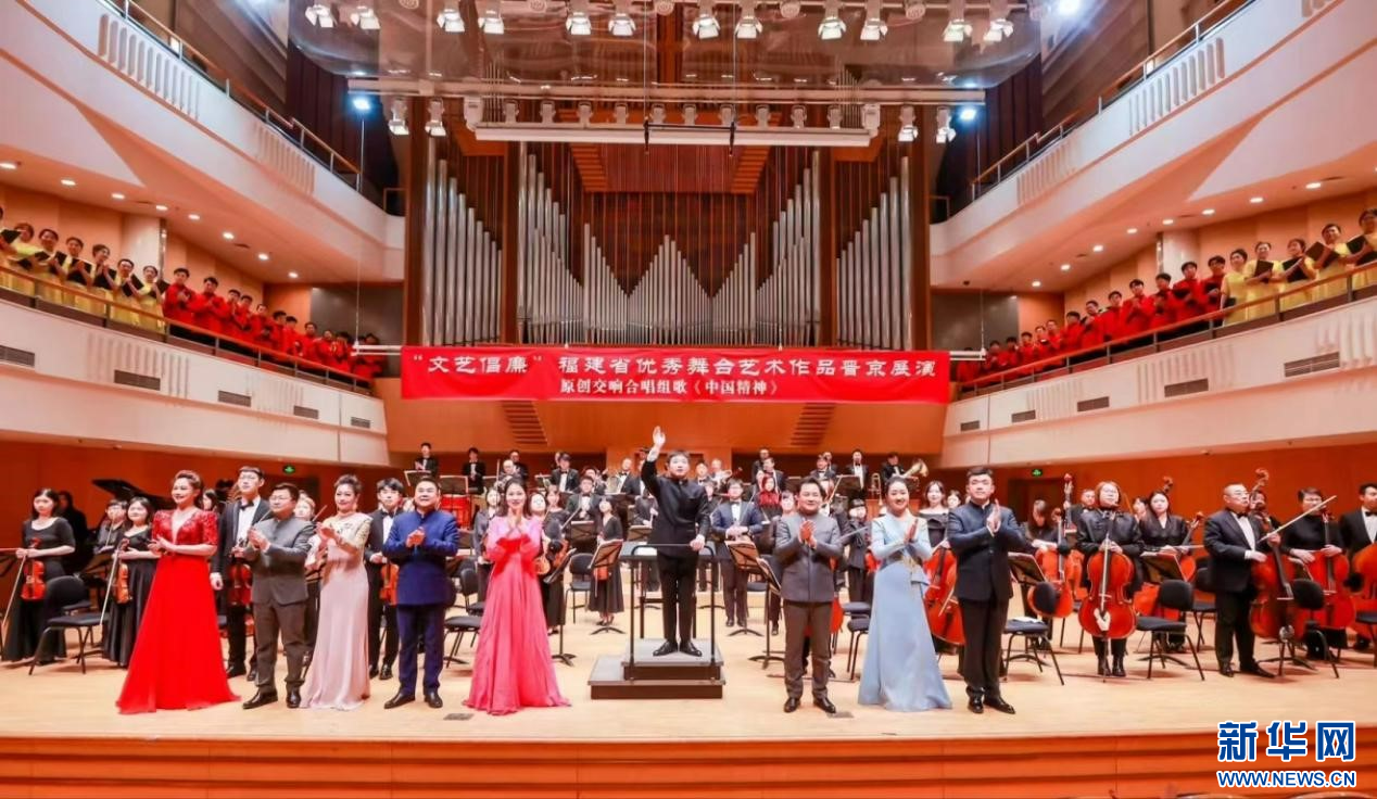 福建艺术职业学院、福建省歌舞剧院原创交响合唱组歌音乐会《中国精神》现场。新华网发(福建省文化和旅游厅供图)