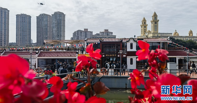 “闽江会客厅”外观上借鉴三坊七巷仿古造型。新华网 刘丰 摄