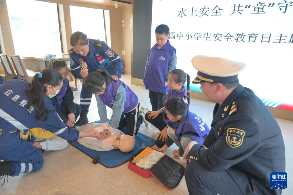 3月24日,福州市海上搜救志愿服务协会应急救援人员和福州海事局工作人员在“闽江之恋”号客轮上为学生开展心肺复苏等救援培训。新华社记者 林善传 摄