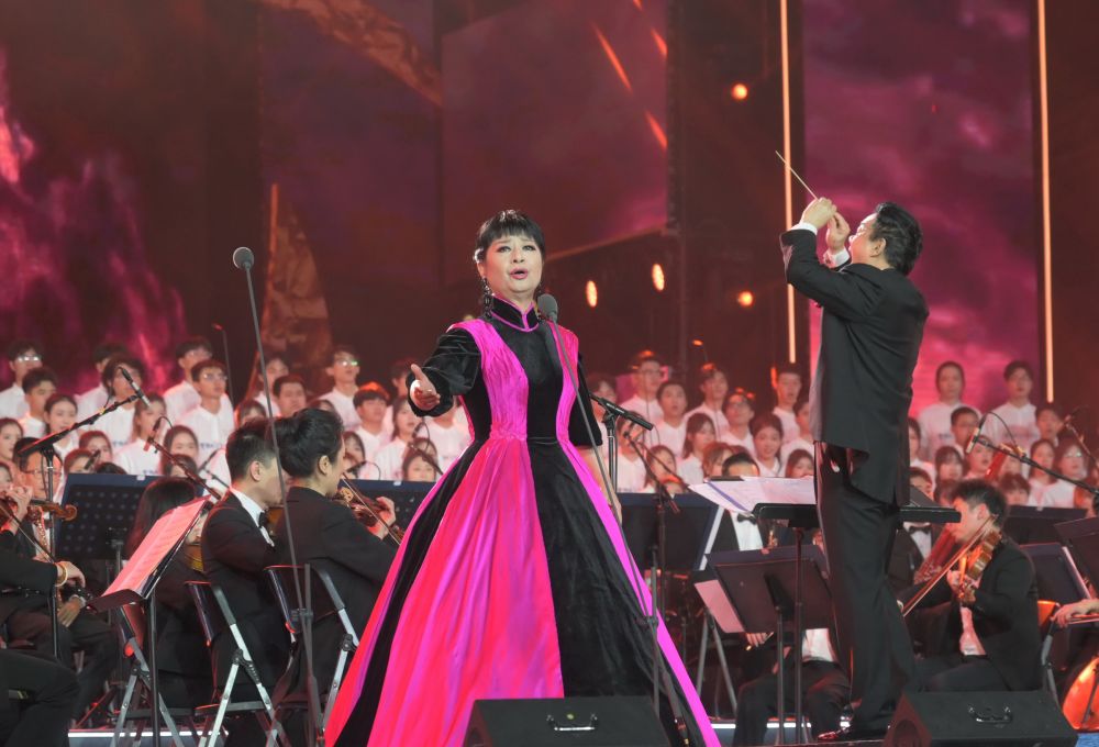 3月24日,歌唱家殷秀梅在演唱《英雄赞歌》。新华社记者 林善传 摄